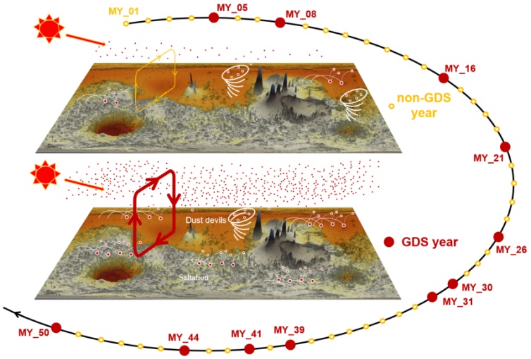 记者从中国科学院大气物理研究所获悉,该所科研人员近日成功研制出火星大气环流模型GoMars。基于该模型,研究团队对火星尘埃循环进行了系统的模拟研究,重点是全面模拟火星尘埃循环并论证了尘埃循环在多个时间尺度上的变异性,并成功模拟了最困难的年际变化,这是火星大气模拟中公认的难点之一。此外,这项研究有效评估了GoMars模拟的性能,为未来实现可靠的火星天气和气候预测奠定了重要基础。相关研究成果发表在学术期刊Progress in Atmospheric Science上。火星,该系统的姐妹星,最像地球的太阳系,它一直吸引着因其神秘的外表而引发了人类的探索。沙漠之下或许有生命起源的线索,人类也有突破生存极限的希望。但火星也面临着致命的威胁:稀薄的大气层、强烈的辐射,最糟糕的是,巨大的沙尘暴可能会摧毁整个星球。一场突如其来的强烈沙尘暴足以导致火星探测设备、太阳能电池板、通讯系统等设备出现故障,让人类探测任务陷入困境。从广义上讲,火星尘埃循环系统涵盖了所有与尘埃相关的过程和机制,包括各种规模的沙尘暴。该系统不仅塑造了火星的日常气候,而且在火星长期气候演化中发挥着核心作用。其中,全球沙尘暴(GDS)的“随机”发生是一种典型的极端气候现象,是造成大气年际变化较大的主要驱动力。火星气候。尽管火星是迄今为止观测数据最丰富的系外行星,但现有数据在时间连续性、空间覆盖范围、时空分辨率等方面仍存在明显局限性。大气的数值模型对于获得火星尘埃循环的完整图像尤为重要。我们将基于火星大气物理理论建立数学模型,利用超级计算机求解复杂的控制方程,实现对火星气候系统的全面模拟和预测。 “天文一号”任务成功 随着宫号的不断准备和“天问三号”采样返回任务,我国火星探测进入了新阶段,了解火星气象环境特别是尘埃循环的需求日益增加。我国自主研发的第一个火星大气环流模型GoMars(火星全球开放行星大气模型)填补了日本长期以来独立模型在火星数值模拟领域的空白。本研究基于GoMars,引入边界层湍流沙尘混合过程,并结合对地表沙流的合理约束,完成了50个火星年(1个火星年约相当于2个地球年)的沙尘循环模拟,并系统研究了其多时间尺度变化特征。 GoMars完全模拟了大气中灰尘的运动,包括沙尘龙卷风、风驱动的沙尘暴以及灰尘的平流和沉积。 。研究发现GoMars在许多重要方面再现了尘埃环流的昼夜、季节和年际特征。在没有全球沙尘暴的年份,沙尘的日间和季节性变化具有高度可重复性。模拟的“气候平均值”(即非全球沙尘暴集合的年平均值)成功地再现了季节性垂直带状尘埃的分布格局和强度。这一结果与火星气候分析数据集和火星气候探测仪观测数据的验证一致。在缺乏直接观测数据的情况下,本研究进一步将GoMars模拟的近地表风应力沙通量与MarsWRF等国际先进的火星大气环流模型进行比较。结果表明,两者在变化的季节性和空间分布上具有良好的一致性。在日尺度上,模拟尘埃通量的最大值出现在当地时间12:00至13:00之间,这与火星探路者号火星车的测量记录一致。 GoMars 可以自然地模拟全球沙尘暴事件,重现其时间、位置和沙尘输送路线,并将其与特定火星年份的真实观测结果进行匹配。此外,该模型支持全球沙尘暴和合理的大气沙尘供给。模拟重要的交互年度变化,包括美元之间的不规则间隔。研究团队计划在现有基础上引入接近实际观测的基本表面动力学特性,进一步研究目前未知的火星尘埃循环年际变化机制。同时,我们将整合火星上生产周期指南的流程,研究其与尘埃循环的相互作用。此外,该团队还将为GoMars建立先进的数据同化系统。该团队的最终目标是将GoMars变成一个具有火星天气预报功能的系统,并利用Tenbun-3的未来测量数据来进行实时火星天气预报。 GoMars 50 年模拟中的 11 场全球沙尘暴和相关沙尘循环机制。