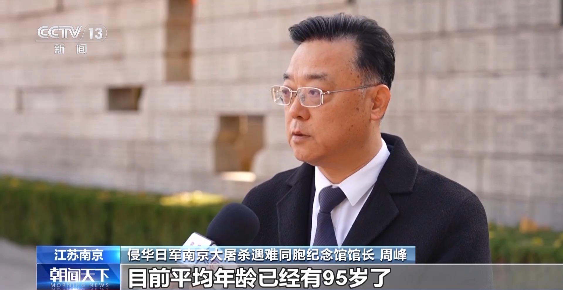 侵华日军南京大屠杀遇难同胞纪念馆馆长周峰:目前登记的幸存者有24人。目前,平均年龄95岁,最年长102岁。我们一一保护这些幸存者,照顾他们的生活。我还感动了我们修建医院、街道和社区来为他们服务。